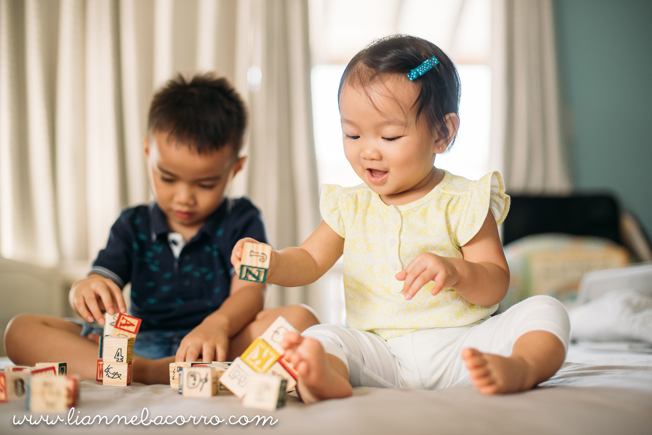I normally ask clients to choose between a lifestyle portrait session or a styled one, but Jean preferred to do both. We started early and took photos inside the house, before the kids dressed up. For the styled shoot, another high school friend, Nina Lazaro, did the setup. (I love how our shoots sometimes turn into mini-reunions hehe). We had a lemonade stand and a vintage back-to-school setup. Jean brought a Radio Flyer wagon to cap off the vintage look. Took some photos too while the kids were on break. They particularly loved the set of blocks Nina brought. The photos of the kids fighting over the blocks have been omitted from this set. Haha.